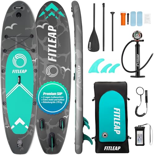 Fitleap Premium Stand Up Paddle Board aufblasbarSUP Set mit Hochdruckpumpe, verstellbarem Paddel, Rucksack, ideal für Yoga, Surfen und Wassersport