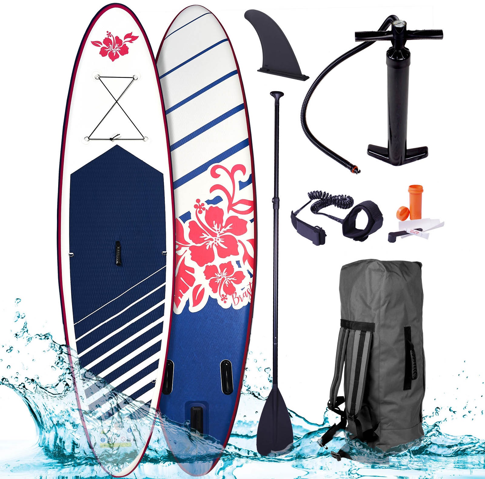 Name BRAST SUP Board Lady Aufblasbares Stand up Paddle Set für Frauen 300cm Hibiskus incl. Zubehör 5 Jahre Garantie Fußschlaufe Paddel Pumpe Rucksack