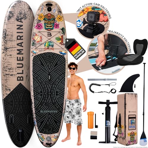 Bluemarina Stand Up Paddle Board aufblasbar | π πππππ ππππππππ - 140 kg Tragkraft - 325x86x15 cm - Stand Up Paddling Set - Aufblasbares SUP Board - Surfbrett (Ariki Tiki 325x86x15cm)