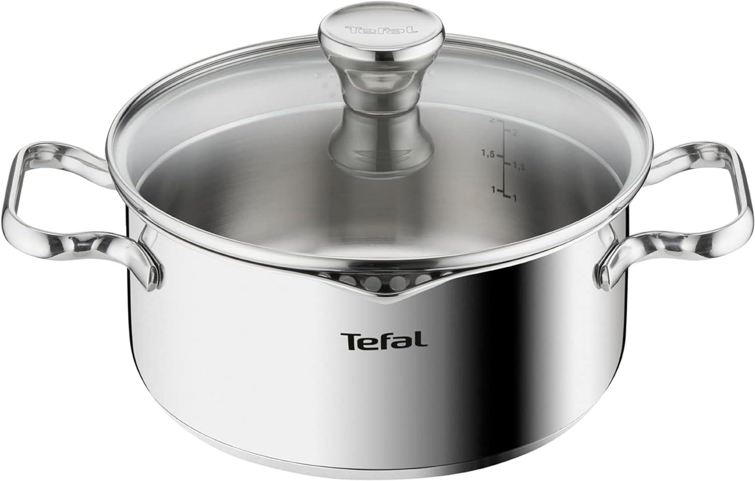 Der Tefal Duetto A70542 Kochtopf mit einem Durchmesser von 20 cm und einer Höhe von 16 cm bietet eine Kapazität von 1,3 l. Er ist ideal für die intensive Nutzung und sorgt für dauerhafte Leistung. Mit der integrierten Messskala gelingt Ihnen das Kochen mühelos. Der Topf ist für Backöfen bis zu 260 °C geeignet und ermöglicht ein stressfreies Abgießen des Garguts. Zudem ist er mit einem robusten Edelstahlgriff ausgestattet und für alle Herdarten, einschließlich Induktion, geeignet. **Highlights** - Integrierte Messskala für perfekte Ergebnisse - Deckel zum Abgießen für stressfreies Entleeren - Robuster Edelstahlgriff für hohe Sicherheit und Langlebigkeit - Ofenkompatibilität bis 260 °C - Geeignet für Gas, Elektro, Glaskeramik und Induktion **Produkteigenschaften** - Durchmesser: 20 cm - Höhe: 16 cm - Kapazität: 1,3 l - Starker Induktionsboden für intensive Nutzung und dauerhafte Leistung