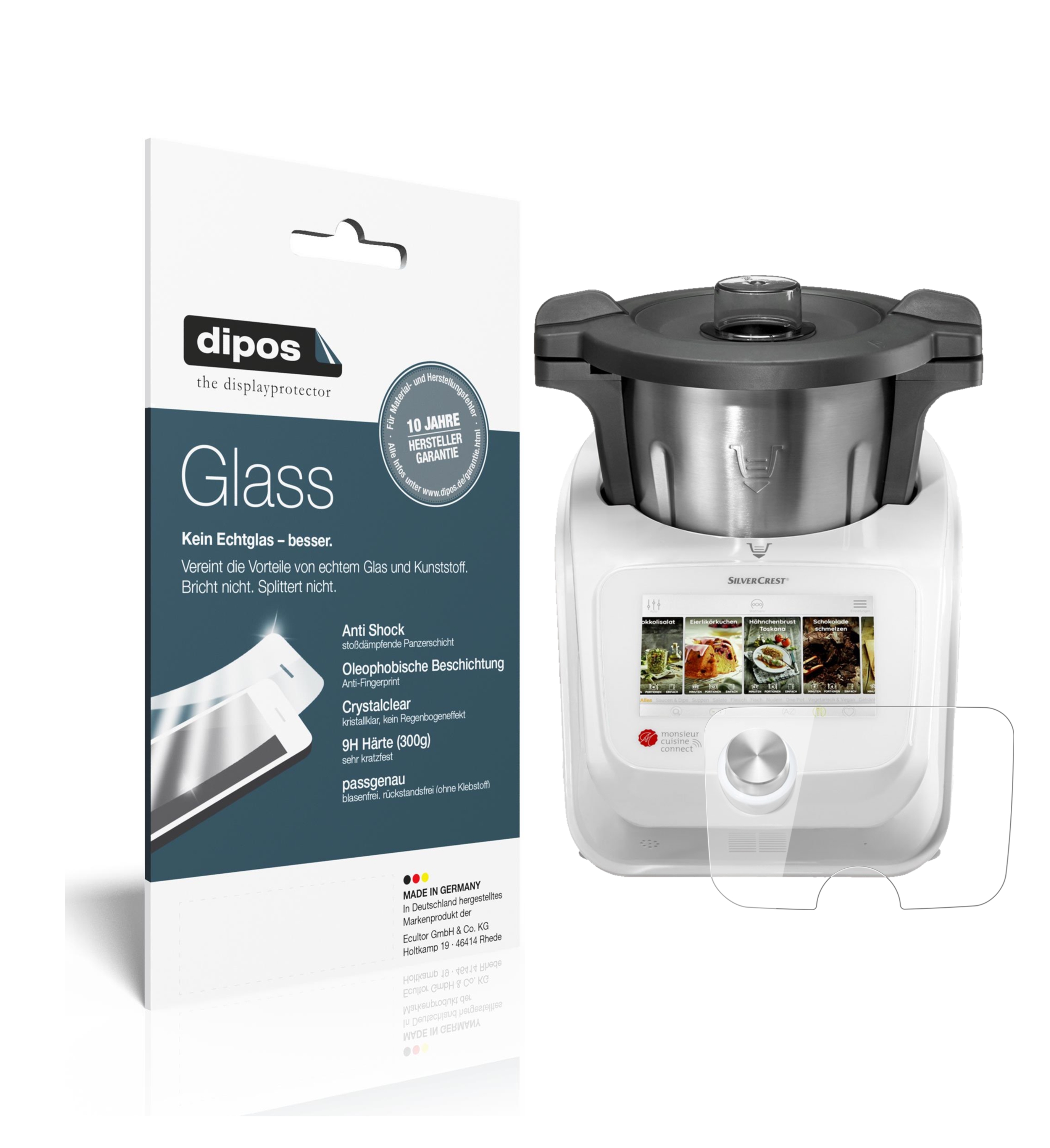 dipos 9H Panzerfolie kompatibel mit SilverCrest Monsieur Cuisine Connect Schutzfolie Displayschutz-Folie