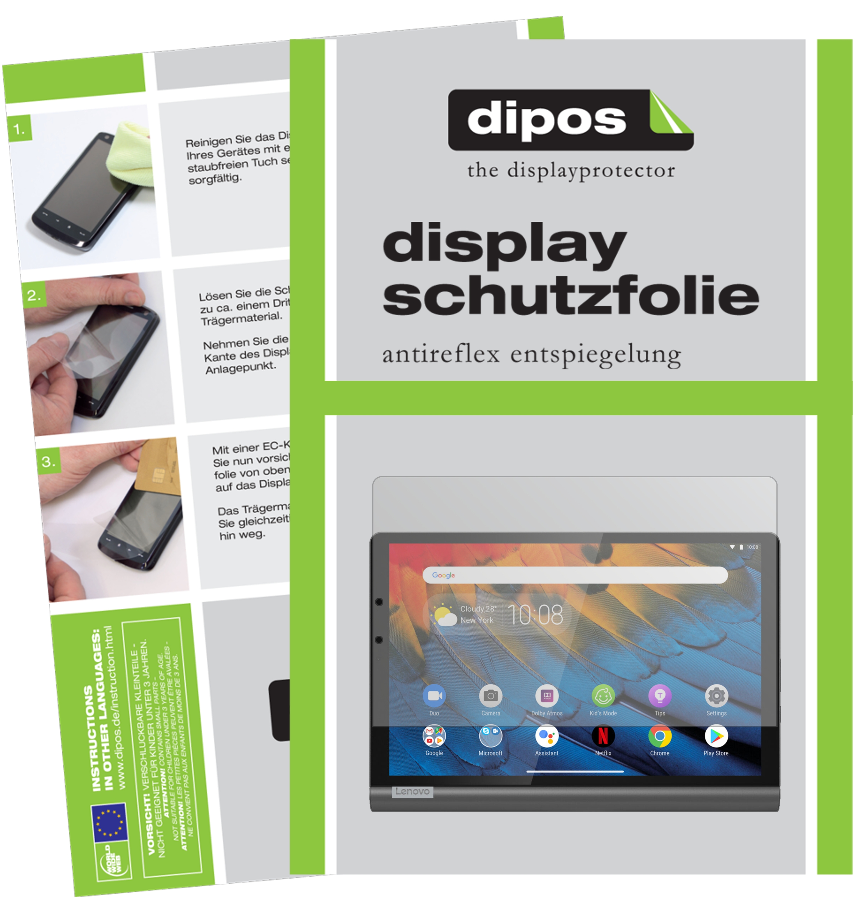 in Tablet-Displayschutzfoliendipos 2x Schutzfolie matt kompatibel mit Lenovo Yoga Smart Tab 10.1 YT-x705F Folie Displayschutzfolie