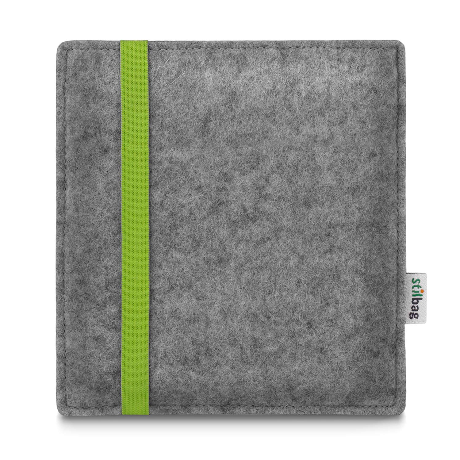 stilbag e-Reader Tasche Leon für Amazon Kindle Oasis (9. Generation) | Wollfilz hellgrau - Gummiband Lime | Schutzhülle Made in Germany