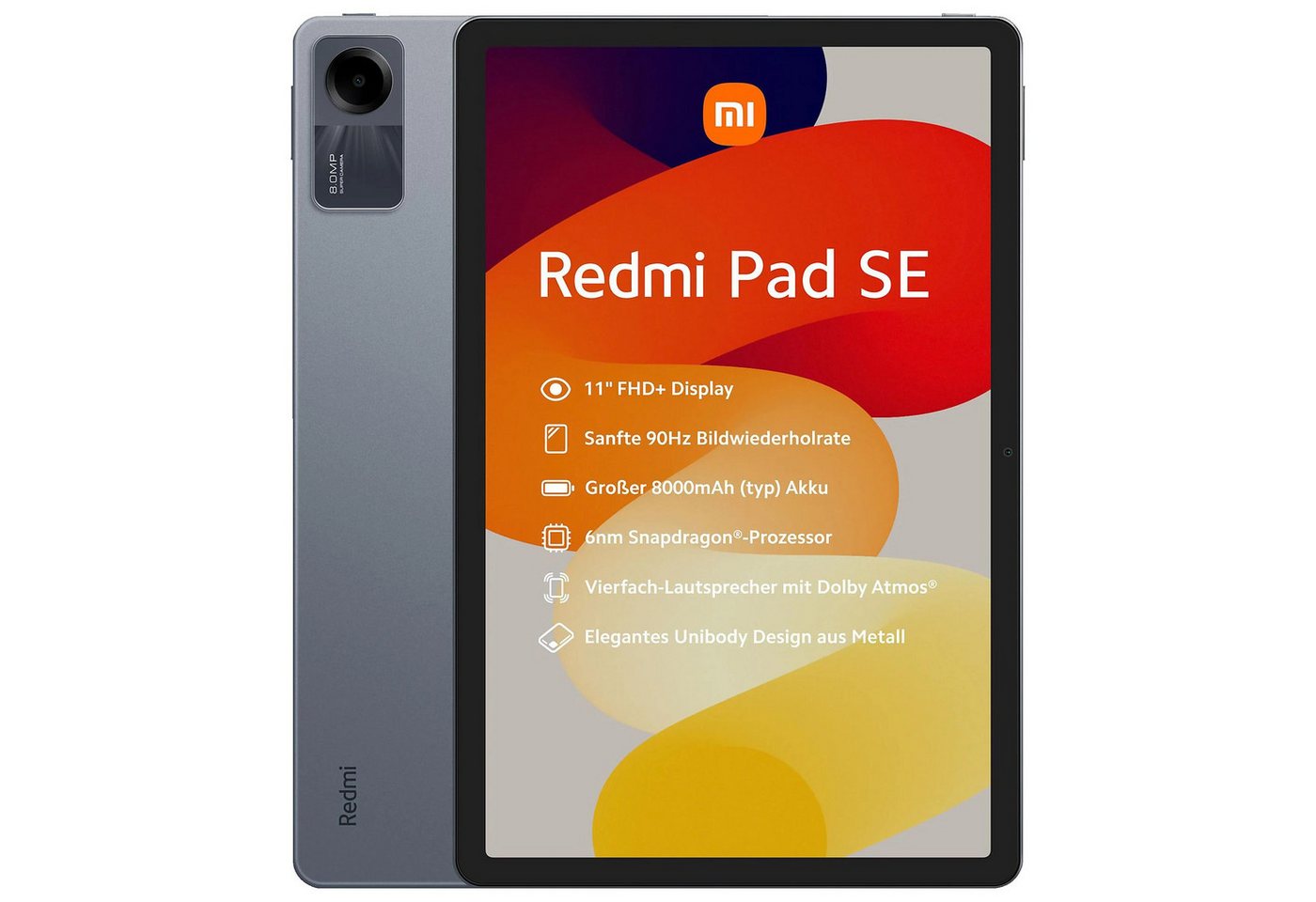 - Das Xiaomi Redmi Pad SE Tablet bietet ein lebendiges visuelles Erlebnis mit seinem 11-Zoll FHD+ Display und einer Bildwiederholrate von 90Hz