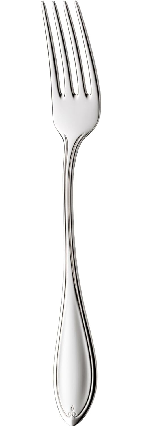 - Das umlaufende Fadendekor mit dem Blattmotiv am Stielende verleiht der Menuegabel eine klassisch-elegante Erscheinung