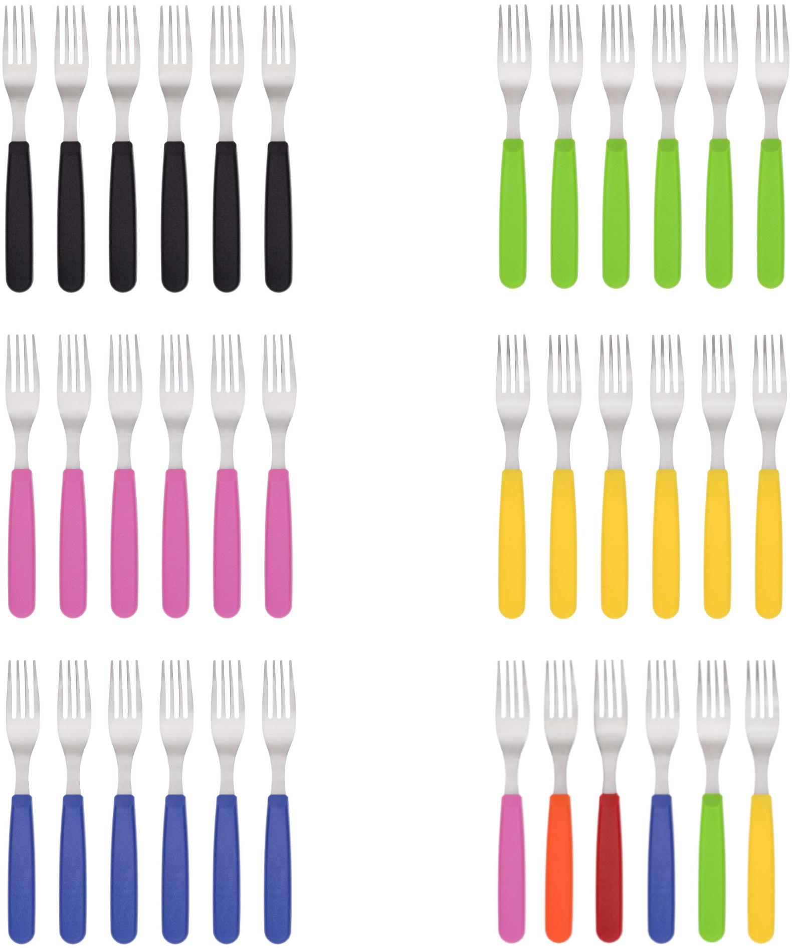 Tafelgabeln 6 Stück, Edelstahl, bunte Griffe, schwarz