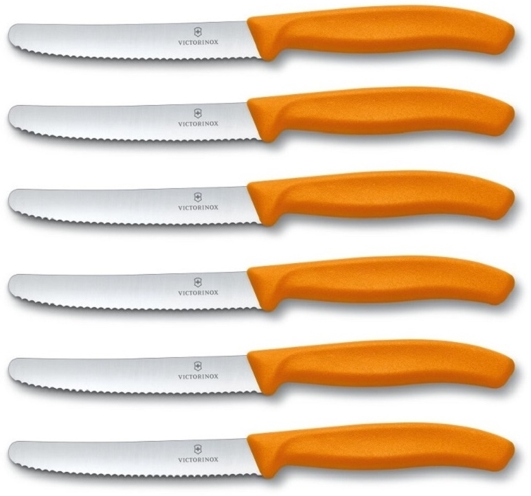 Tafelmesser hergestellt in der Schweiz Alle Messer mit extra scharfem Wellenschliff und ergonomischen Griffen Swiss Classic Victorinox Küchenmesser Farbe: orange (6 stück)