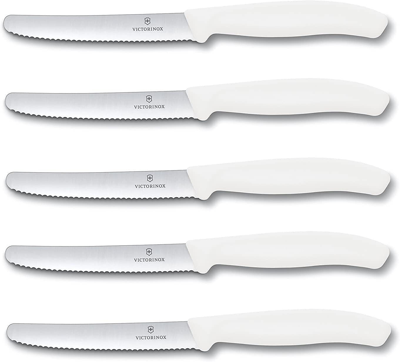 Victorinox Swiss Classic Set | Tomaten-, Brötchen-, Tafelmesser | 5-teilig | Weiß | ideal für präzises Schneiden | hochwertige Schweizer Qualität | spülmaschinengeeignet