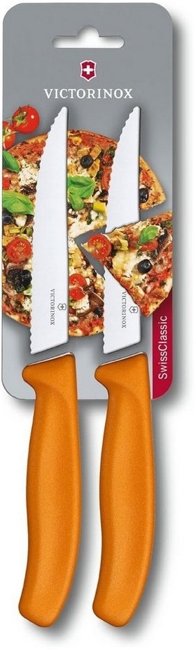| Name | Victorinox, Swiss Classic, Profi Steak- und Pizzamesser, Extra Scharfe Klinge, Wellenschliff, 12 cm, Robuster Kunststoffgriff, Rostfreier Stahl, orange |