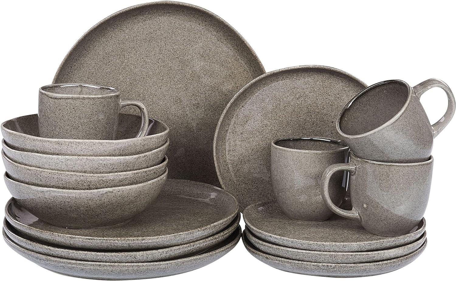 - Das 16-teilige Tafelservice COSTMARY ist handgefertigt aus hochwertigem Steinzeug und bietet Platz für 4 Personen.