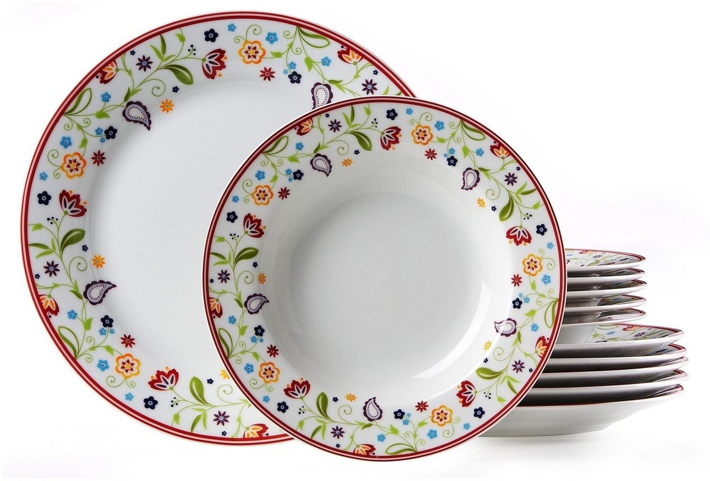 Beschreibung Das Ritzenhoff & Breker SHANTI DOPPIO Tafelservice ist ein 12-teiliges Set, das aus hochwertigem, spülmaschinengeeignetem Porzellan gefertigt ist. Es umfasst 6 große Speiseteller mit einem Durchmesser von ca. 27 cm und 6 tiefe Suppenteller mit einem Durchmesser von ca. 22 cm. Das farbenfrohe Paisley-Blüten-Dekor sorgt für eine fröhliche Atmosphäre und verleiht Ihrem Tisch eine harmonische Note. **Highlights** - 12-teiliges Set für 6 Personen - Hochwertiges, spülmaschinengeeignetes Porzellan - Buntes Paisley-Blüten-Dekor - 6 große Speiseteller (Ø ca. 27 cm) - 6 tiefe Suppenteller (Ø ca. 22 cm) **Produkteigenschaften** - Material: Porzellan - Maße Speiseteller: Ø ca. 27 cm - Maße Suppenteller: Ø ca. 22 cm **Lieferumfang** - 6x Speiseteller - 6x Suppenteller