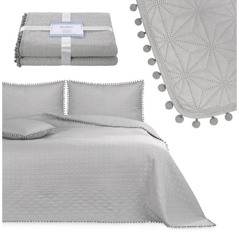 in TagesdeckenAmeliaHome Tagesdecke Tagesdecke Bettüberwurf Allzweckdecke Wohndecke mit Pompons Ultrasonic Steppung