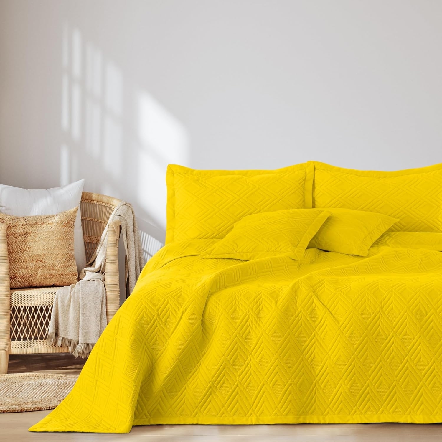 - Die AmeliaHome Tagesdecke hat eine ansprechende abstrakte Gestaltung in der Farbe Ophelia Gelb