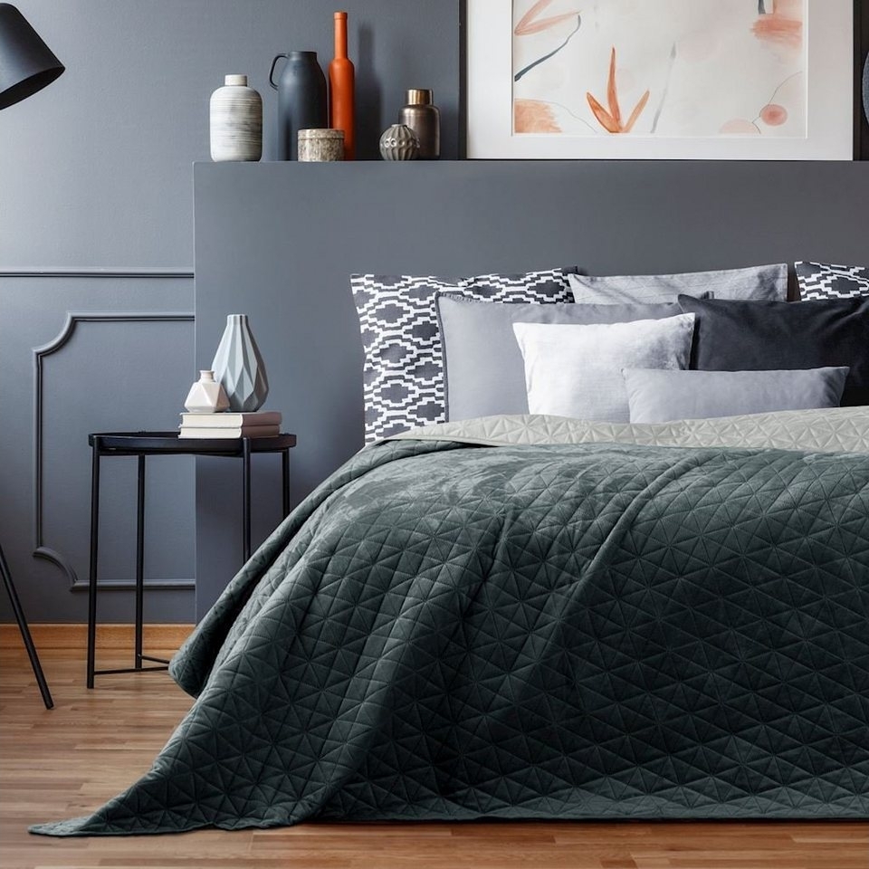 in TagesdeckenAmeliaHome Tagesdecke 170x210 cm Anthrazit Silber zweiseitig Steppung Velvet Samt Laila