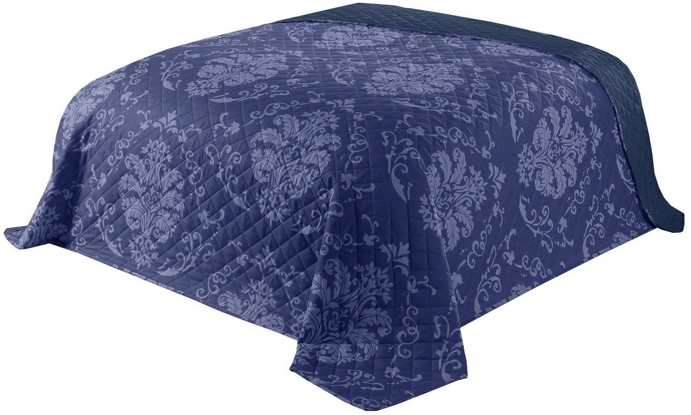 in TagesdeckenDelindo Lifestyle Bettüberwurf Floral dunkelblau weich wattiert und aufwändig gesteppt