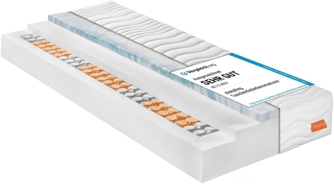 | Name | sleepling 196383 Federkern Matratze Innovation 420 Taschenfederkern mit Visco Matratzenauflage | 7-Zonen Tonnentaschenfederkernmatratze | Made in EU | Ökotex 100 | Härtegrad 2, 90 x 200 x 25 cm, weiß |
