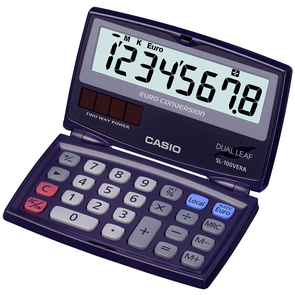 - Der CASIO SL-100VERA Taschenrechner verfügt über eine Prozenttaste zur einfachen Berechnung von Prozentsätzen.