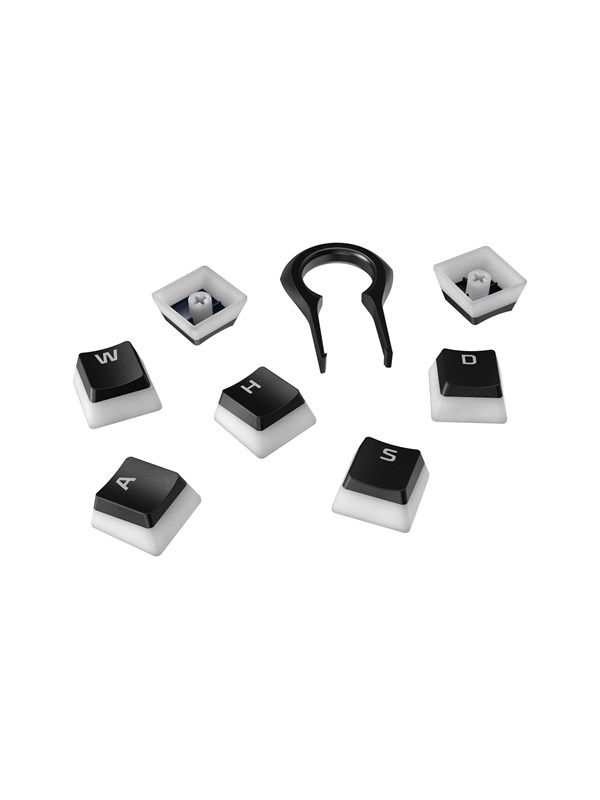 - Der HP HyperX Pudding PBT Keycaps Satz besteht aus transluzenten schwarzen Tastenkappen.