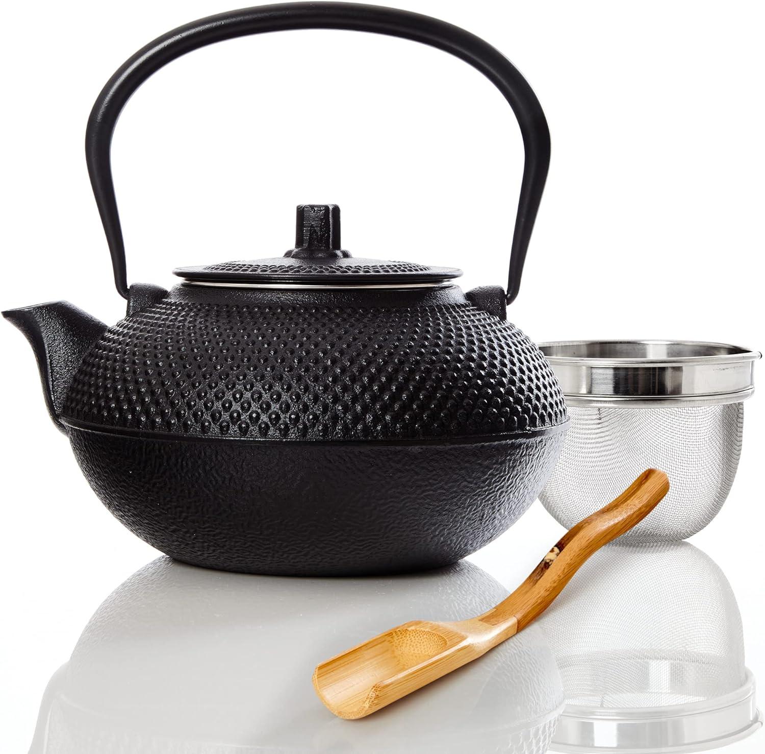 Bonvivre Teekanne Gusseisen-emailliert mit Sieb und Löffel 1 4L