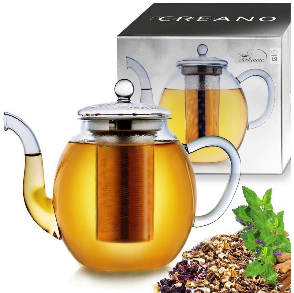 | Name | Creano Teekanne Creano Glas-Teekanne 1,5l, 3-teiliger Teebereiter mit integriertem, (1er-Set, 2-St), tropffrei |