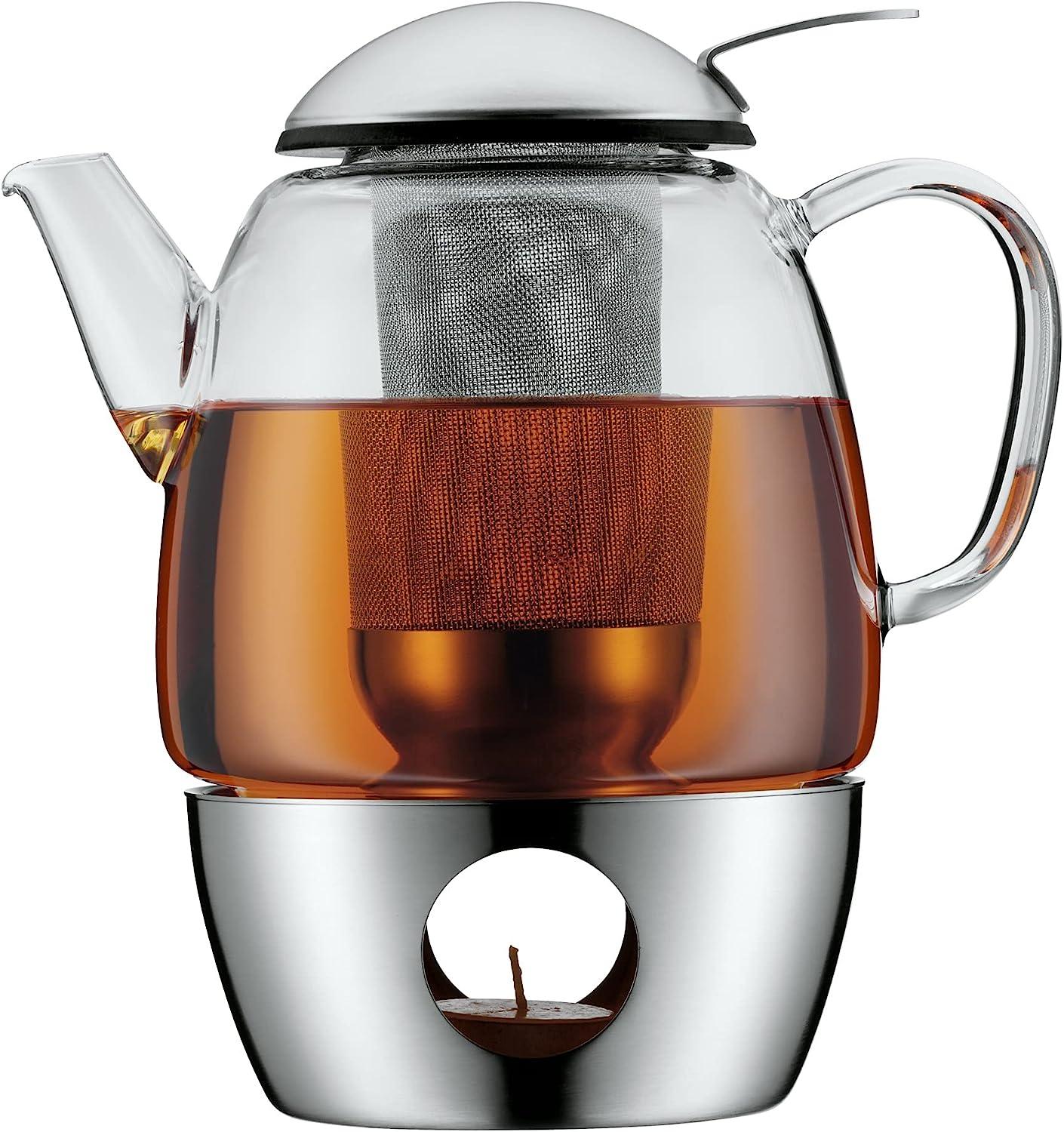 Das WMF Tee-Set SmarTea bietet Ihnen die ideale Ausstattung für eine gelungene Teezeremonie. Die perfekt aufeinander abgestimmte Kanne, das Teesieb und das Stövchen sorgen für höchsten Teegenuss. Genießen Sie Ihren Tee, während das Teelicht im Stövchen für eine langanhaltende Wärme sorgt. Hergestellt aus hochwertigem Cromargan® und hitzebeständigem Güteglas, ist dieses Set sowohl funktional als auch stilvoll. **Highlights** - Perfekt abgestimmtes Set für die Teezeremonie - Teesieb für lose Teeblätter - Stövchen mit Teelichtfunktion für warmen Tee über Stunden - Hergestellt aus hochwertigem Cromargan® und hitzebeständigem Güteglas - Alle Teile sind spülmaschinengeeignet **Produkteigenschaften** - Material: Cromargan® und hitzebeständiges Güteglas - Inhalt: 1x Kanne (Füllmenge 1,0 Liter, Höhe 20 cm), 1x Teesieb, 1x Stövchen - Stövchen mit Öffnung für ein Teelicht - Warmhaltefunktion über mehrere Stunden - Artikelnummer: 0631096030 **Lieferumfang** - 1x WMF Tee-Set SmarTea - 1x Teekanne - 1x Teesieb - 1x Stövchen