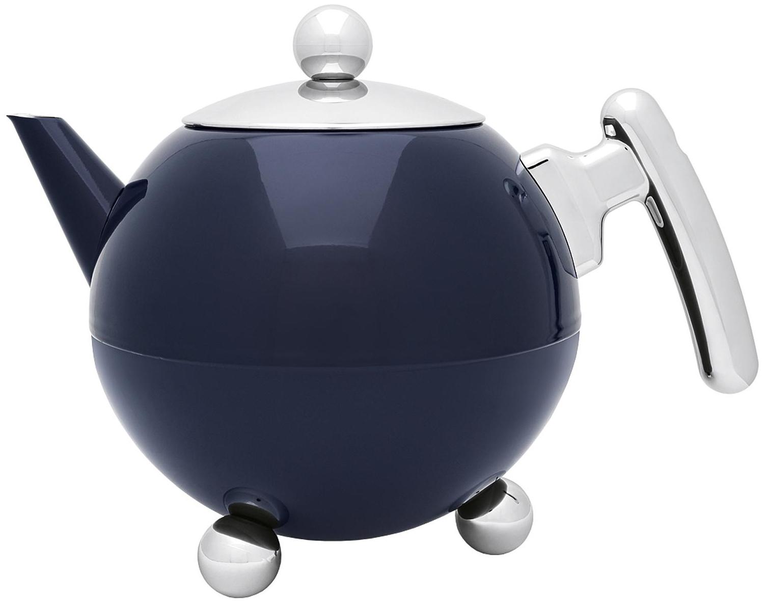 Die Bredemeijer Teekanne Duet Bella Ronde ist ein stilvoller Klassiker, der mit ihrer runden Form auf jedem Küchentisch begeistert. Hergestellt aus hochwertigem Edelstahl und mit einer doppelwandigen Konstruktion, hält sie Ihren Tee bis zu einer Stunde lang heiß und geschmackvoll. Der ergonomische Griff und die spezielle Tülle sorgen für ein einfaches, tropffreies Einschenken. Mit einem Volumen von 1,2 Litern ist sie ideal für den perfekten Teegenuss. **Highlights** - Hält den Tee bis zu einer Stunde lang heiß und geschmackvoll - Ergonomischer Griff für einfaches Einschenken ohne Tropfen - Isolierende Materialien halten den Griff und den Deckelknopf handwarm **Produkteigenschaften** - Farbe: Dunkelblau / Oxford Blau / Beschläge chromfarben - Material: Hochwertiger Edelstahl - Abmessungen: 240 mm x 160 mm x 185 mm - Gewicht: 590 g - Volumen: 1,2 l - Doppelwandige Konstruktion aus Edelstahl für eine optimale Isolierung - Tülle tropft beim Einschenken nicht - Nicht spülmaschinengeeignet - Nicht mikrowellengeeignet