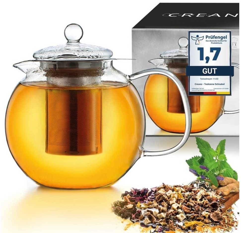 | Name | Creano Teekanne Creano Teekanne aus Glas 1,7l, 3-teilige Glasteekanne mit integriertem, (1er-Set, 2-St), tropffrei |