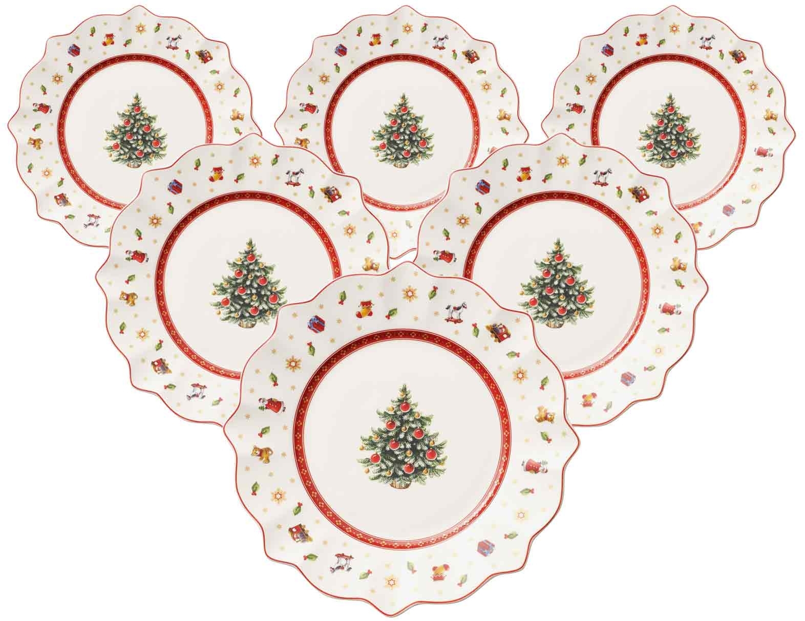 **Villeroy & Boch Toy's Delight Frühstücksteller ø 24,5 cm weiß 6er Set** Die Kollektion Toy’s Delight von Villeroy & Boch weckt mit ihren verspielten Motiven in Rot, Grün und Weiß Kindheitserinnerungen und versprüht nostalgischen Charme. Das europäische Traditionsunternehmen Villeroy & Boch steht seit 1748 für Porzellan höchster Qualität. Der dekorative Teller in Grün passt perfekt zum Weihnachtsbrunch oder zum Kaffee am Nachmittag und bringt besinnliche Gemütlichkeit auf den Tisch. Gefertigt aus hochwertigem Premium Porcelain. Mikrowellensicher und am besten von Hand reinigen. Bringen Sie Weihnachtsstimmung auf den Tisch mit Porzellan von Villeroy & Boch. **Artikeldetails:** Durchmesser: ca. ø 24,5 cm Höhe: ca. 3 cm Material: Premium Porzellan Farbe: weiß Merkmal: Handwäsche empfohlen, mikrowellensicher Lieferumfang: 6x Frühstücksteller