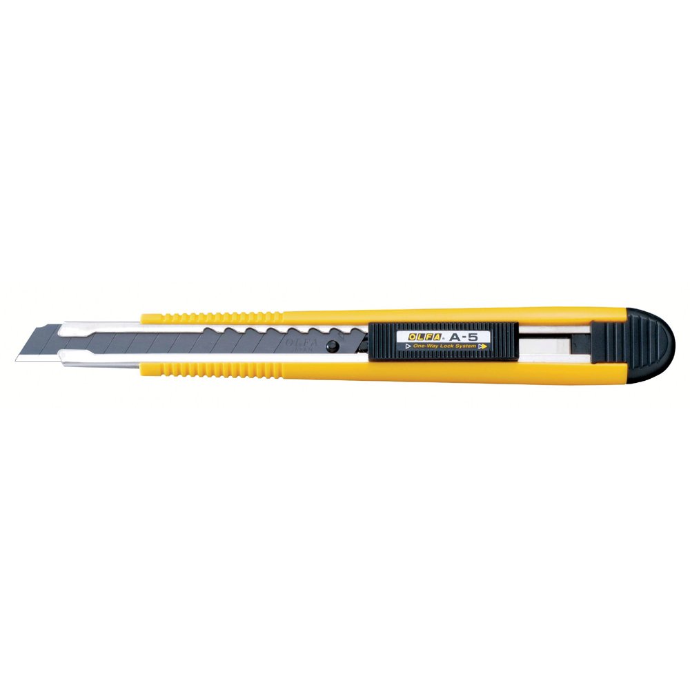 - Das OLFA schlanke Industrie-Cuttermesser A-5 verfügt über eine automatische Klingenverriegelung für zusätzliche Sicherheit.