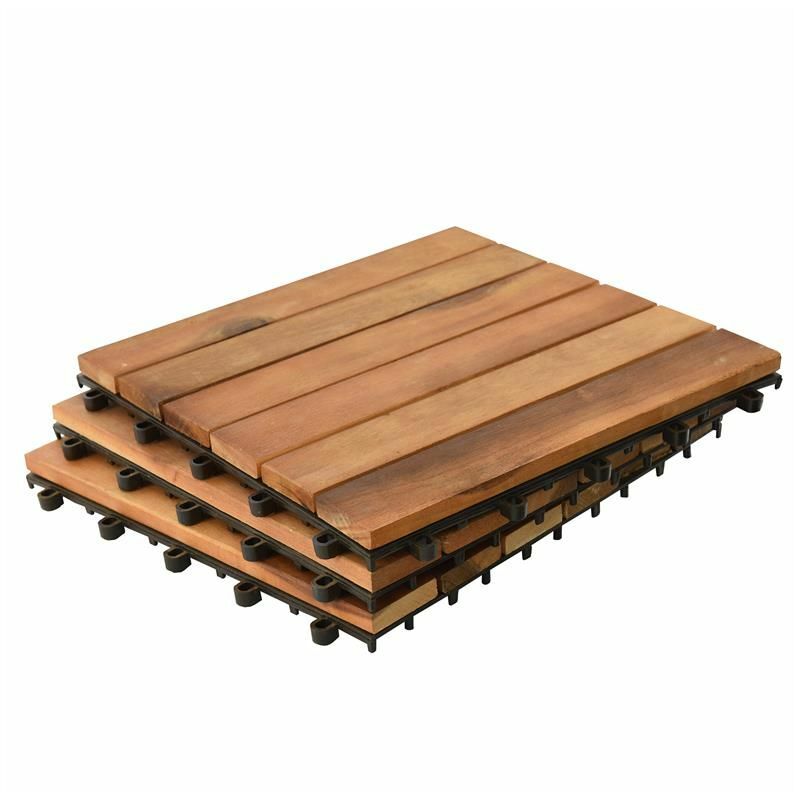 in TerrassenfliesenHolzfliesen Akazie Terrassenfliesen 30x30 cm Stecksystem Mosaik Terrasse Balkon 1