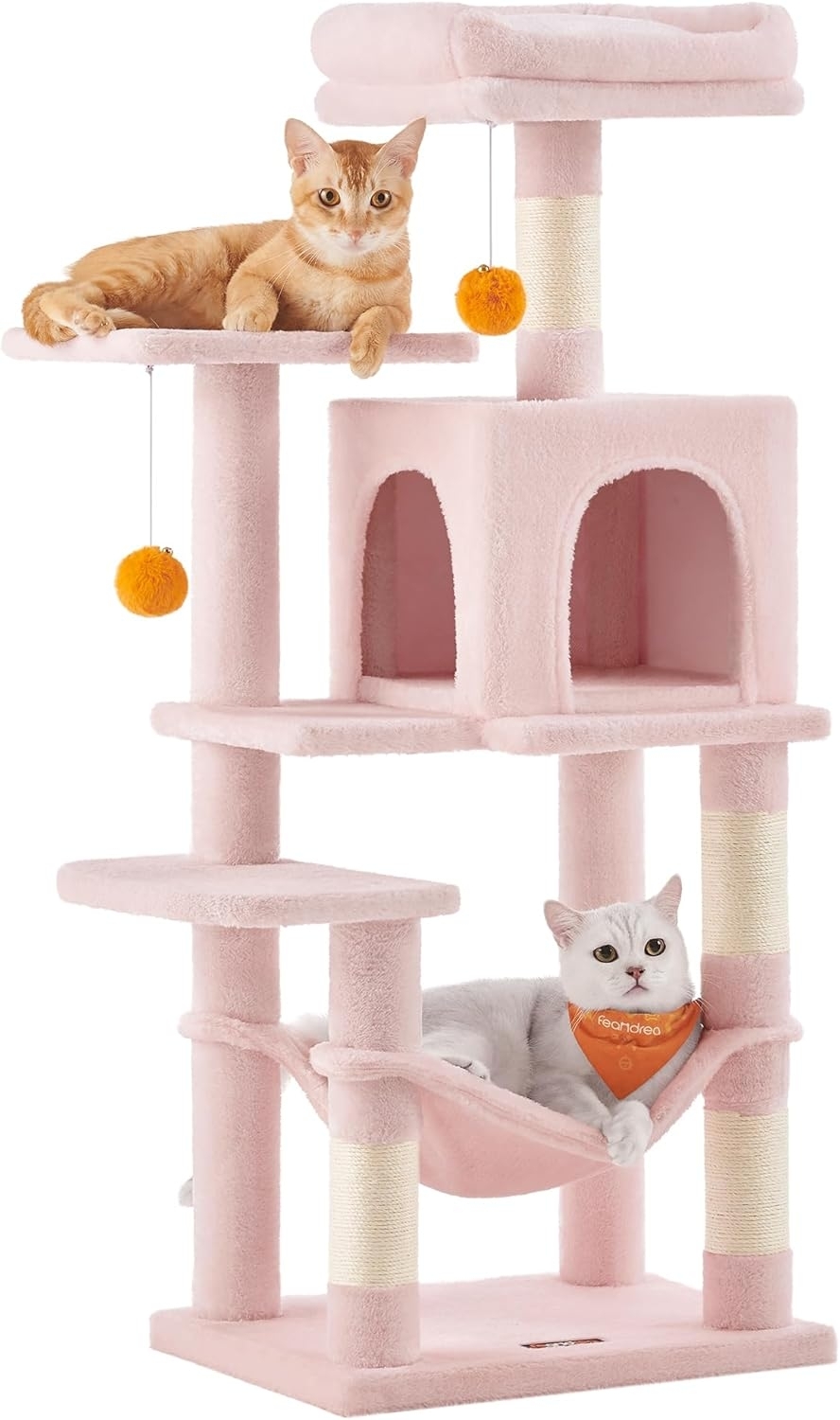 | Name | Feandrea Kratzbaum, 112 cm hoch, Katzenbaum, mehrstöckiges Katzenhaus, mit 4 Kratzsäulen, 2 Plattformen, Hängematte, Höhle, pastellrosa |