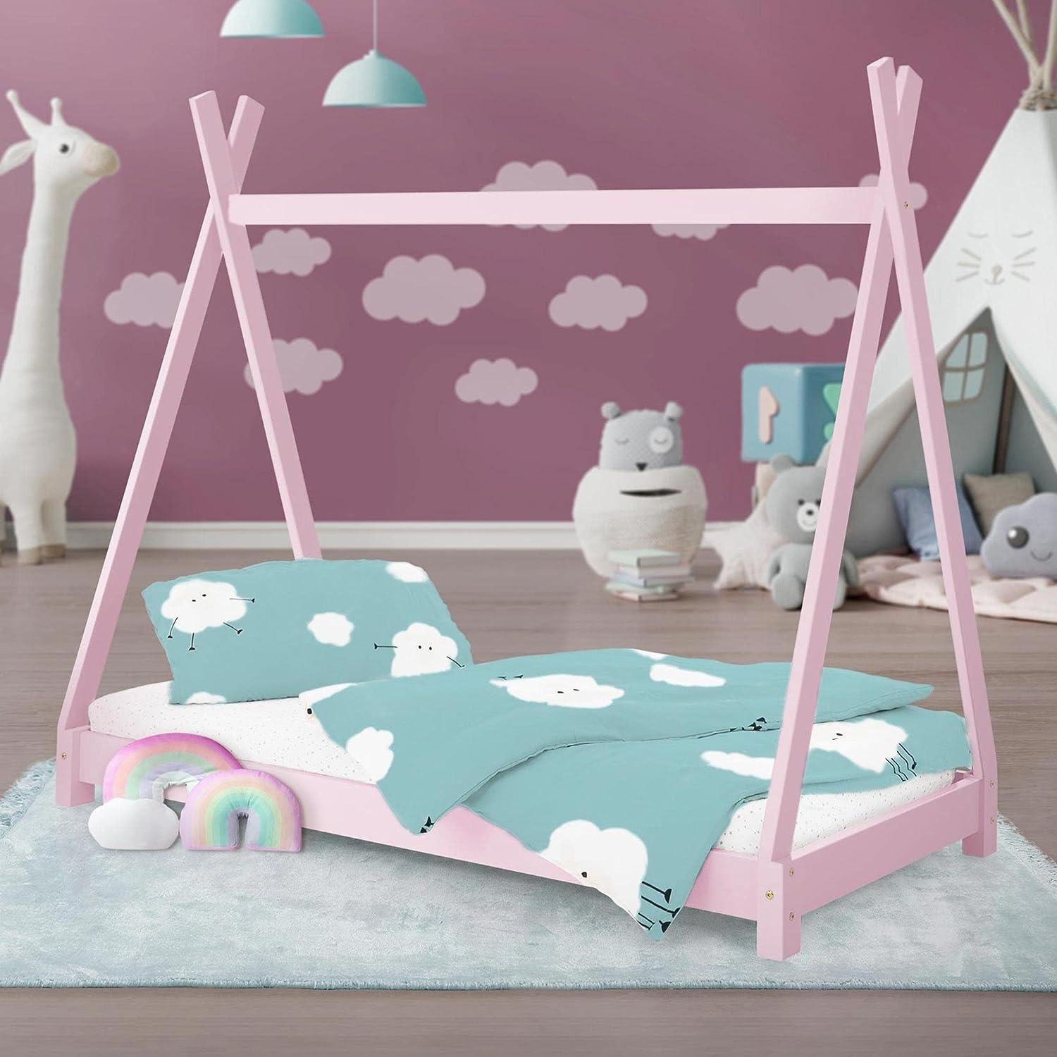 Kinderbett Tipi mit Lattenrost 80x160 cm Rosa aus Kiefernholz ML-Design