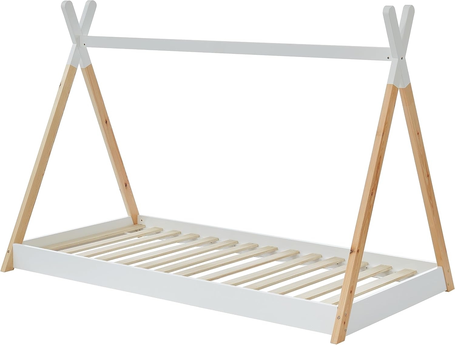 in Tipi BettenBAÏTA Tipibett für Kinder Montessori Tiny – Massivholz Kiefer Natur – 90x190 cm Tinytipi Natur/Weiß