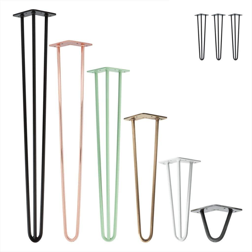 Die Hairpin Leg Tischbeine von 3X Natural Goods Berlin sind die ideale Wahl für Ihre individuellen Möbelprojekte. Mit einer Höhe von 71 cm und einer stabilen Konstruktion aus 12 mm Rundstahl bieten sie sowohl Funktionalität als auch Stil. Die Beine sind pulverbeschichtet, galvanisiert oder geölt und in verschiedenen Farben erhältlich. Die Montage ist einfach und schnell, sodass Sie im Handumdrehen Ihre neuen Möbel genießen können. **Highlights** - Vielseitig einsetzbar: Perfekt für Esstische, Schreibtische, Couchtische, Barhocker, Sitzbänke und mehr. - Einfache Montage: Schnelle und unkomplizierte Befestigung. - Stabile Konstruktion: Gefertigt aus 12 mm Rundstahl mit doppelseitigen Schweißnähten und stärkerer Grundplatte. - Individuelle Gestaltung: Breite Farbauswahl und verschiedene Größen und Ausführungen erhältlich. - Hochwertige Verarbeitung: Leichte Neigung der Beine für besondere Stabilität. **Produkteigenschaften** - Material: 12 mm Rundstahl - Grundplatte: Stärker als herkömmliche Hairpins (4 mm) - Höhe: 71 cm - Streben: 2 **Lieferumfang** - 3 Tischbeine/Möbelbeine in der gewählten Größe, Farbe und Ausführung - Inklusive Schrauben