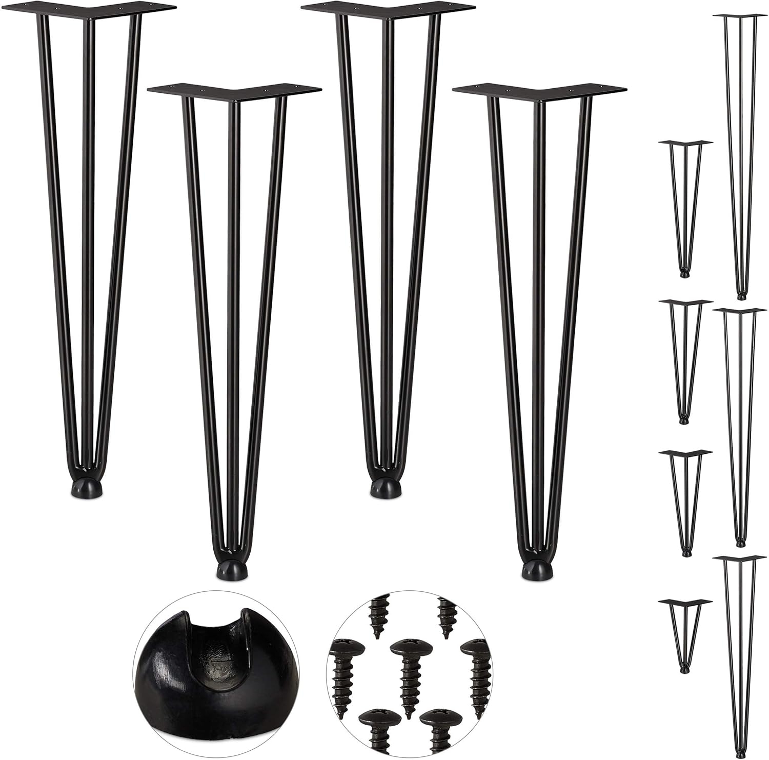 | Name | Relaxdays Hairpin Legs, 4er Set, 3 Streben, Metall, Haarnadel Tischbein für Hocker, Tisch & Schrank, 45 cm hoch, schwarz |