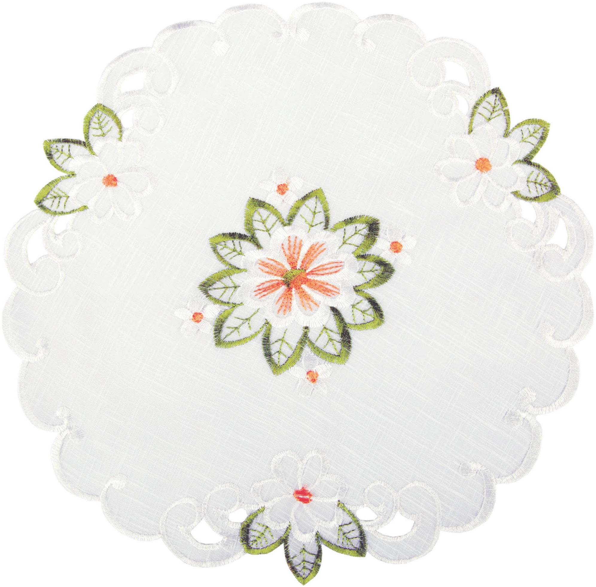 in Tischdecken & TischläuferARSVITA Tischdecke mit Stickereimit Blumen oder Schmetterlingen bestickte 30x30cm Decke für den Tisch, in vielen verschiedenen Designs verfügbar Grün - Orange Rund