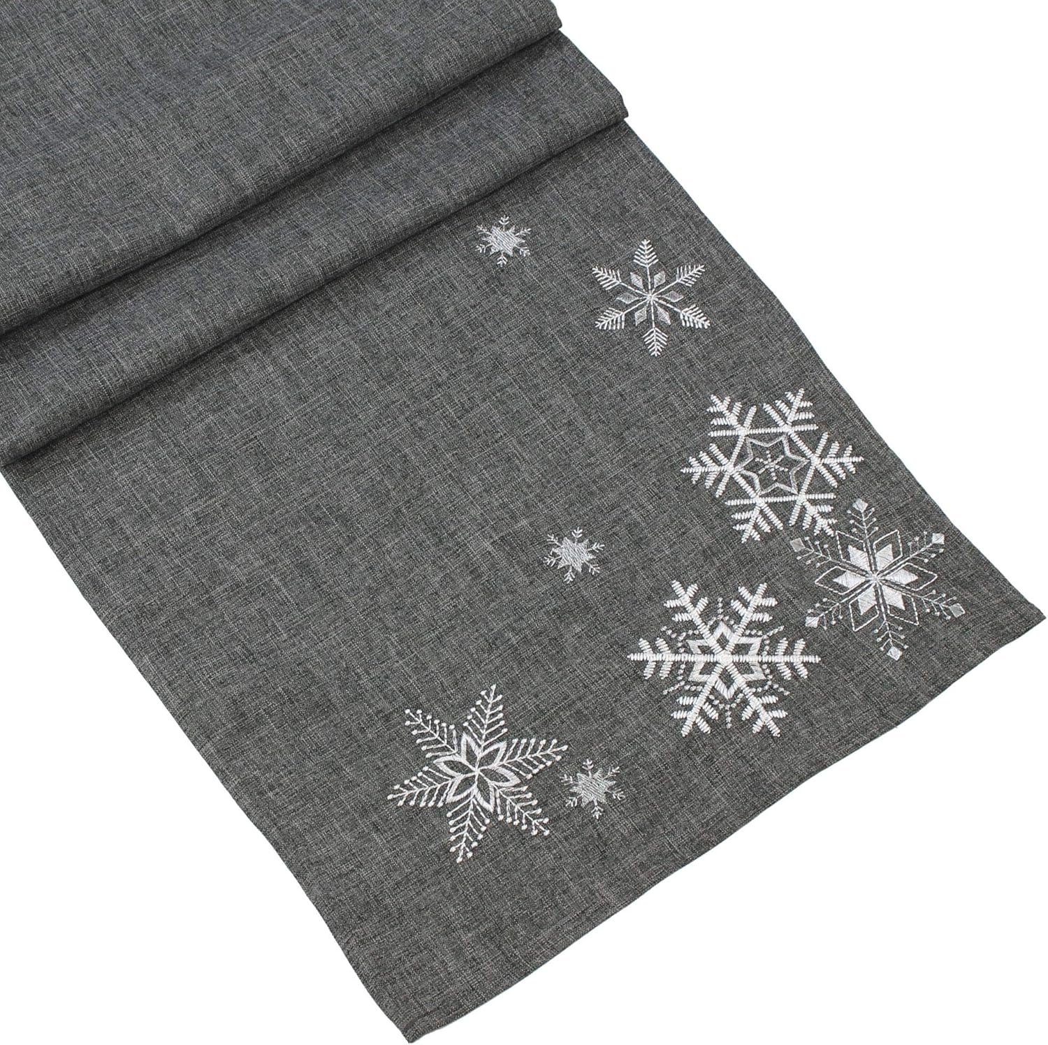 Tischläufer "Silberkristall" verleiht Ihrem Esstisch eine elegante Note. Aus 100 % Polyester gefertigt, besticht er durch ein zeitloses, meliertes Graudesign und ein filigranes Eiskristallen-Muster in schimmerndem Weiß und funkelndem Silber. Mit den Maßen von 40 x 140 cm ist dieser Tischläufer die perfekte Wahl für stilvolle Tischdekorationen. **Highlights** - Bestickt mit filigranen Eiskristallen - Zeitloses Design in Grautönen - Aus 100 % Polyester gefertigt - Maße: 40 x 140 cm - Verleiht jedem Tisch eine elegante Note **Produkteigenschaften** - Material: bestickt, 100 % Polyester - Abmessung: 40 x 140 cm - Puristischer Grundstoff in zeitlosen Grautönen meliert - Detaillierte Bestickung in schimmerndem Weiß und funkelndem Silber
