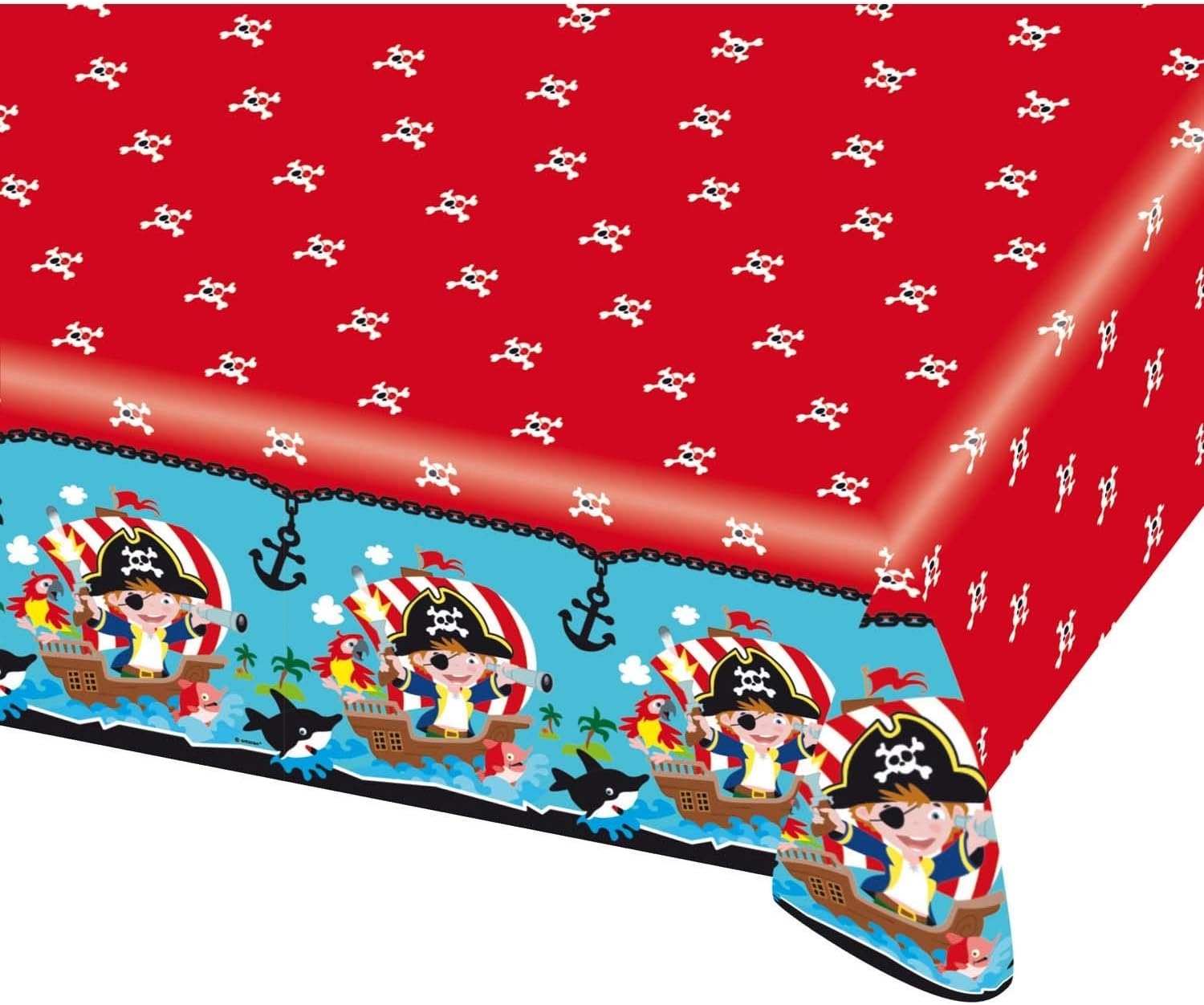 | Name | Amscan 9902123 - Tischdecke Pirat, 1 Stück, Größe 120 x 180 cm, Kunststoff, wasserabweisend, Seeräuber, Anker, Totenköpfe, Schiffe, Kinderparty, Mottoparty, Geburtstag, Rot |