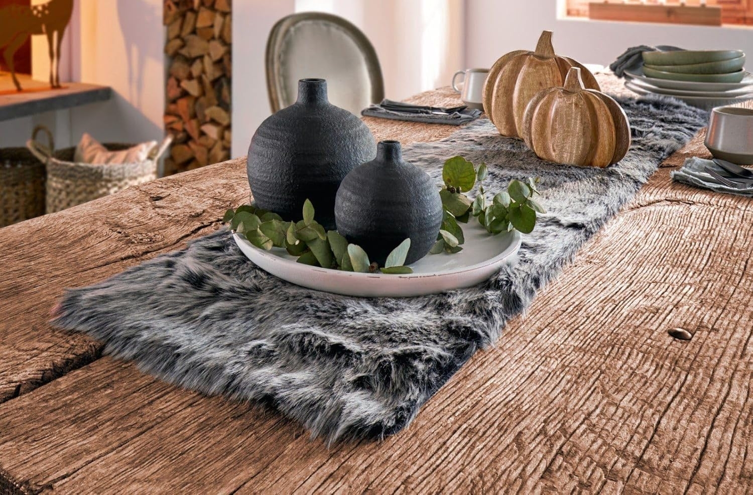- Der Tischläufer aus Kunstfell ist kuschelig weich und in den Trendfarben schwarz/grau ein absoluter Hingucker.