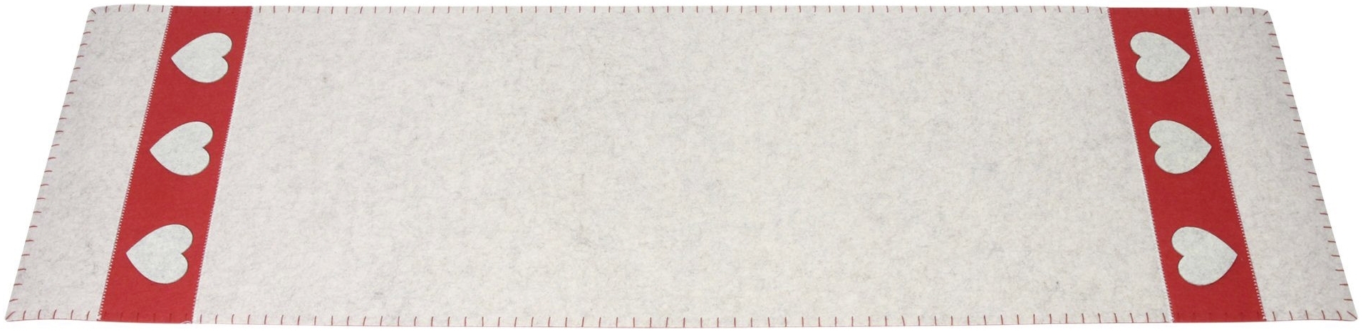 **Tischläufer "Beherzt"**- Filz in Beige und Rot- Herzapplikation- aufwändig gearbeitet- 100% Polyester Maß: 40 x 140 cm