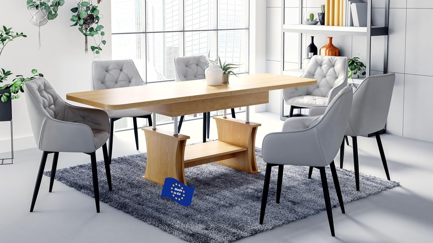 Dieser höhenverstellbare und ausziehbare Couchtisch kombiniert modernes Design mit maximaler Flexibilität. Mit einer Breite von 120 cm, die auf bis zu 200 cm erweiterbar ist, und einer verstellbaren Höhe von 60 cm bis 75 cm, bietet er vielseitige Nutzungsmöglichkeiten. Der Tisch ist aus pflegeleichtem Nachbildungsfurnier und stabilen MDF gefertigt. Dank des Gasdruckmechanismus lässt sich die Höhe mühelos anpassen. Ideal für kleine Räume und bis zu 6 Personen geeignet. **Highlights** - Höhenverstellbar von 60 cm auf 75 cm für individuelle Anpassung - Ausziehbar von 120 cm auf bis zu 200 cm für zusätzliche Ablagefläche - Pflegeleichtes und UV-beständiges Nachbildungsfurnier für einfache Reinigung - Integrierte Verlängerungsplatte für platzsparende Nutzung - Extra Schublade für zusätzlichen Stauraum **Produkteigenschaften** - Breite: 120 cm (erweiterbar auf 160 bis 200 cm) - Tiefe: 70 cm - Korpusmaterial: MDF für hohe Stabilität - Mechanismus: Gasdruckfeder für mühelose Höhenverstellung - Montage: Einfache Selbstmontage mit bebilderter Anleitung - Hergestellt in der EU - Stoßfeste ABS-Kanten für Langlebigkeit und Robustheit