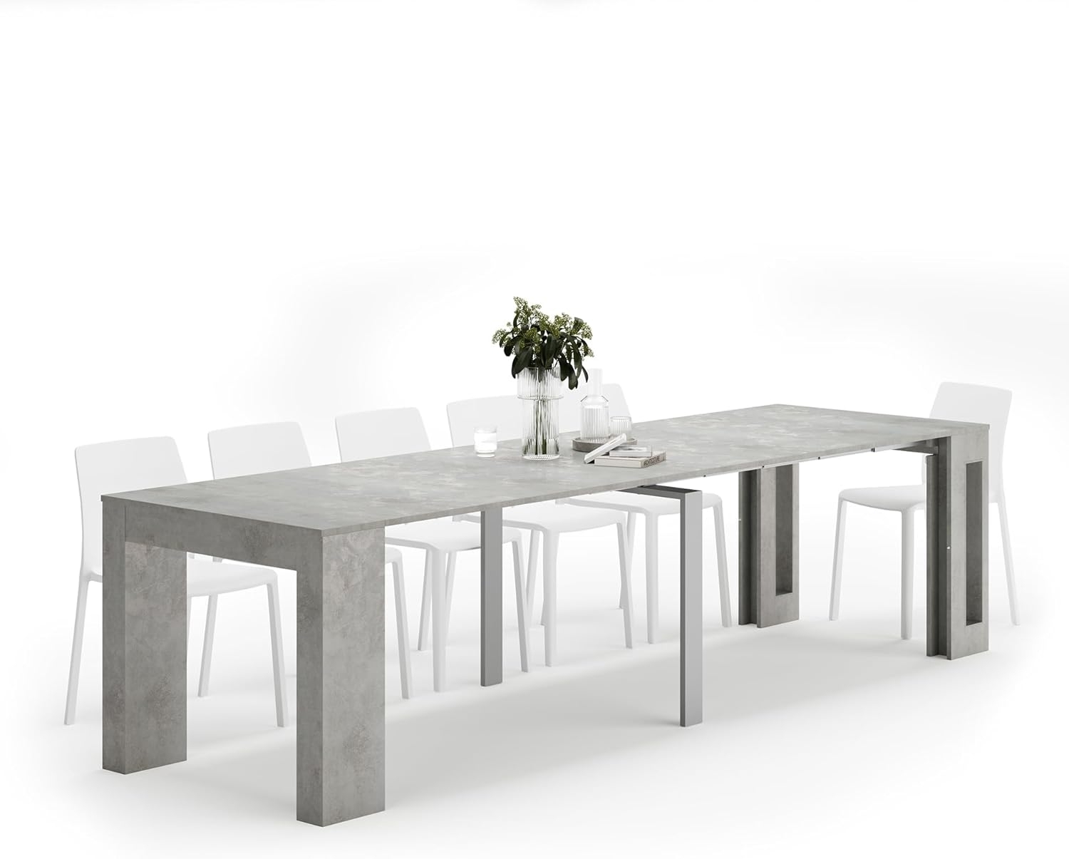 MOBILI FIVERAusziehbarer Konsolentisch mit Verlängerungen, Easy, Betonoptik, Laminiert/Aluminium, Made in Italy