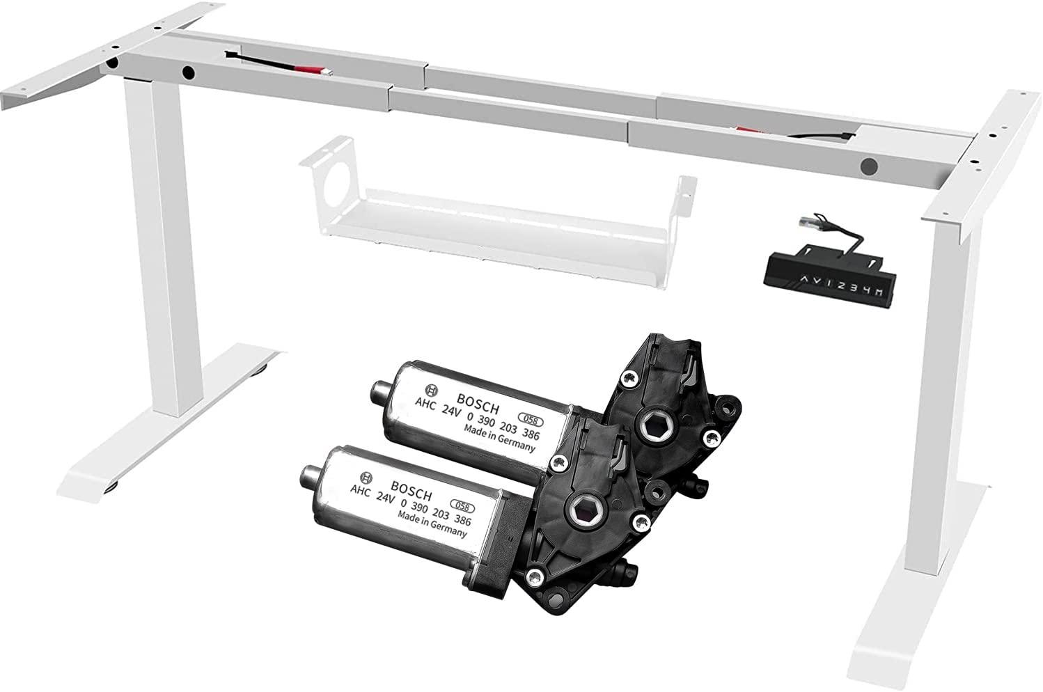 FANZTOOL höhenverstellbarer Schreibtisch-Gestell mit 2 x Bosch Motoren elektrisch stufenlos in WeißArbeitstisch Tischbeine mit Memory-Funktion, USB Steckdose, Kabelwanne