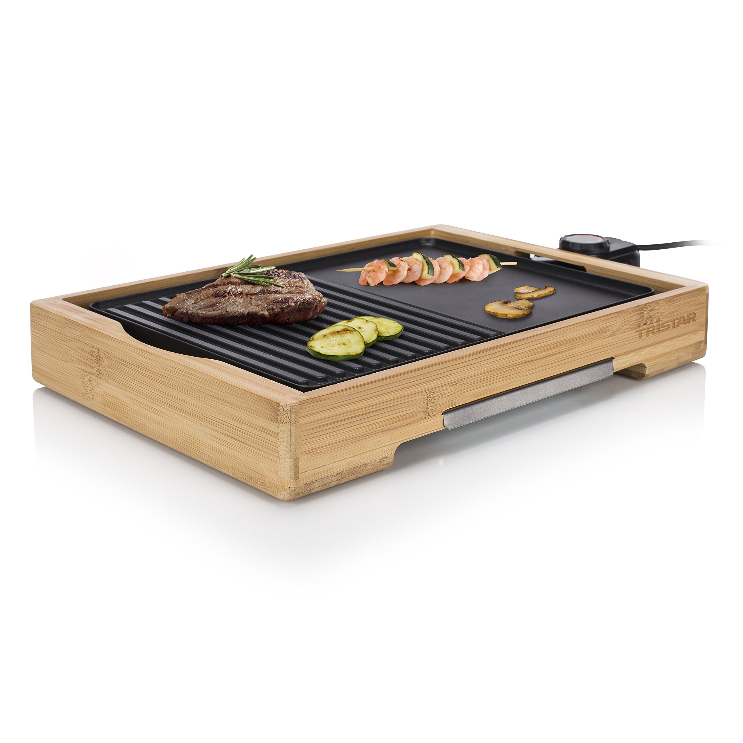 Tristar BP-2640 Bambus Kombinierter Grill mit Teppanyaki-36 x 25,4 cm