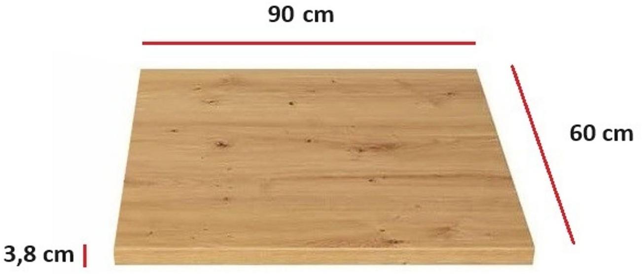 Die Küchenarbeitsplatte im Dekor Eiche Artisan ist die perfekte Ergänzung für Ihre Einbauküche. Mit einer Breite von 90 cm, einer Tiefe von ca. 60 cm und einer Höhe von ca. 3,8 cm bietet sie ausreichend Platz für alle Küchenaktivitäten. Die robuste Spanplatte mit HPL-Beschichtung sorgt für Langlebigkeit und eine ansprechende Optik, während die doppelrund postformierte Vorderkante und die seitlichen Kanten im Dekor belegt sind. **Highlights** - Dekor: Eiche Artisan NB - Material: Spanplatte mit HPL Beschichtung - Vorderkante: Doppelrund Postforming - Seitliche Kanten: Im Dekor belegt - Stärke: ca. 38 mm **Produkteigenschaften** - Maße: Breite 90 cm / Tiefe ca. 60 cm / Höhe ca. 3,8 cm - Passend für die Küchenmodelle EKO White, ARTISAN und STILO