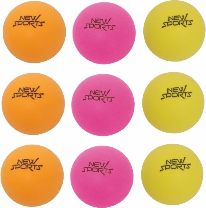- Die New Sports Tischtennis Bälle sind in bunten Farben wie orange, pink und gelb erhältlich