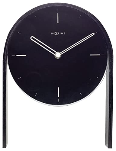XXXL TischuhrSchwarz, Holz und Glas, 21x27x6.5 cm, leises Uhrwerk, RoHS, CE