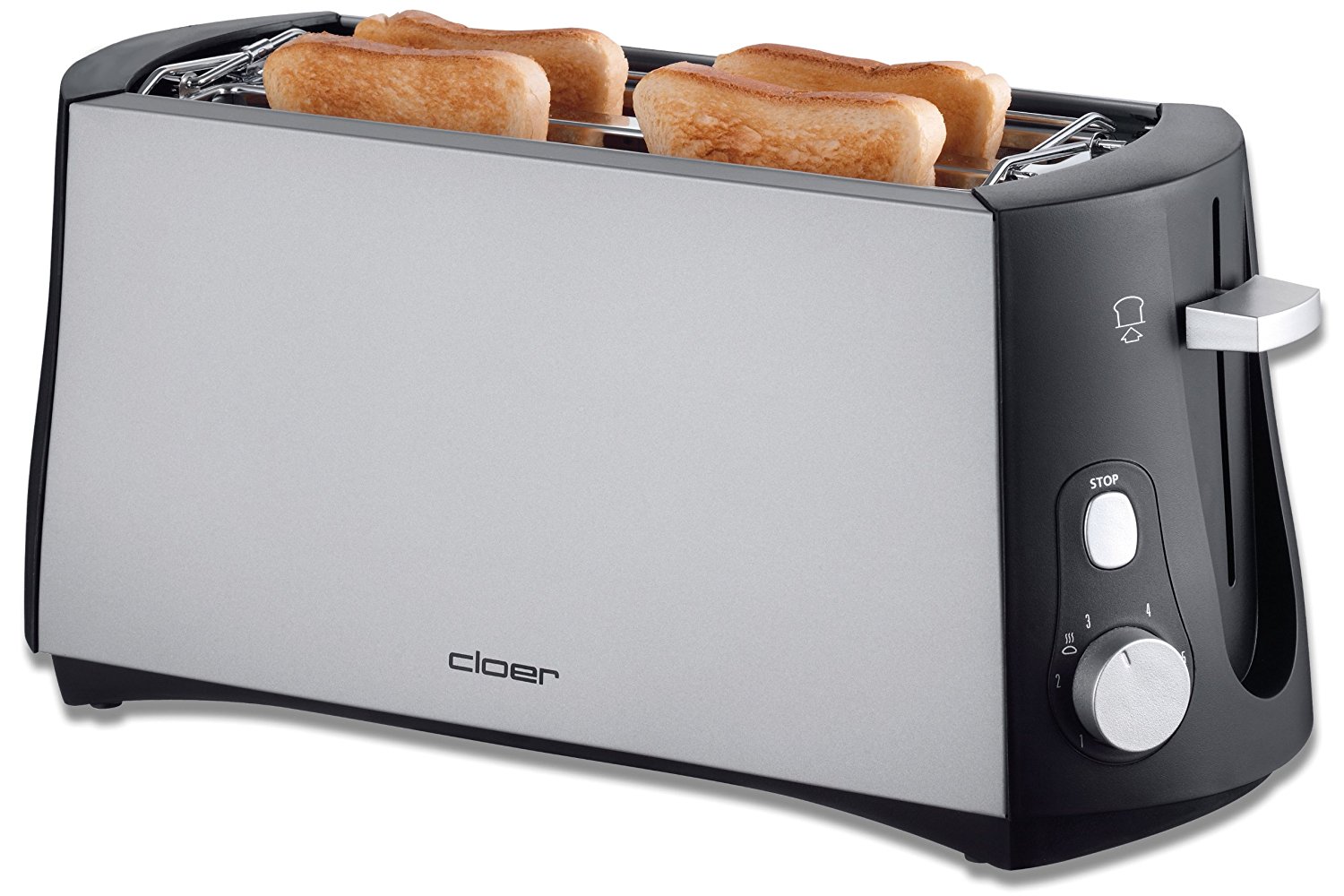 - Der Cloer 3710 Langschlitztoaster bietet Platz für bis zu vier Toastscheiben gleichzeitig.