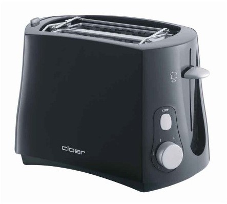 in ToasterCloer 3310 Doppelschlitztoaster825 W, 6 Bräunungsstufen, integrierter Brötchenaufsatz, Krümelschublade, Nachhebevorrichtung, schwarz
