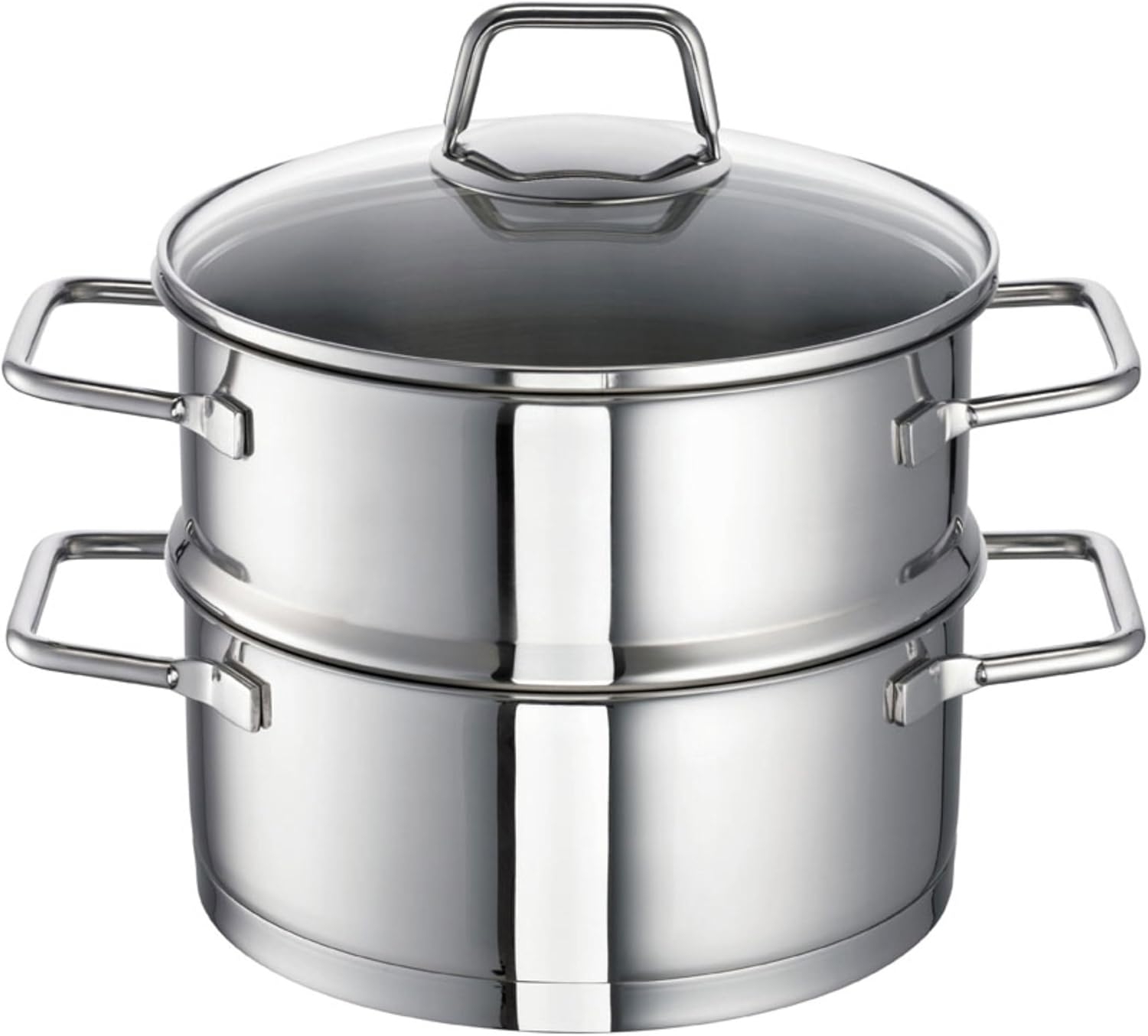 | Beschreibung | Der Wega Alles-Dämpfer 20 cm ist ein vielseitiger Dampfgarer aus hochwertigem, rostfreiem Edelstahl. Mit einem hitzebeständigen Güteglasdeckel und einem Dämpfaufsatz ermöglicht er das schonende Kochen und Dämpfen von Kartoffeln, Klößen, Fisch und Gemüse. Die spezielle Konstruktion reduziert das Durchrühren beim Garen. Der Dampfgarer kann auch ohne Einsatz als Topf verwendet werden und bietet eine Herstellergarantie von 10 Jahren. **Highlights** - Vielseitiger Dampfgarer aus hochwertigem Edelstahl - Hitzebeständiger Güteglasdeckel - Schonendes Kochen und Dämpfen von Kartoffeln, Klößen, Fisch und Gemüse - Weniger Durchrühren beim Garen - Kann auch als Topf verwendet werden **Produkteigenschaften** - Material: rostfreier Edelstahl 18/10 - Abmessungen: 20 cm Durchmesser - Wärmeisolierende Edelstahlgriffe - Topfböden mit energiesparendem ecotherm Allherd-Aluminium-Kapselboden - Geeignet für alle gängigen Herdarten, inkl. Induktion und Glaskeramik-Kochfeld - Hersteller-Nummer: 00126-20 **Lieferumfang** - 1x Wega Alles-Dämpfer 20 cm - 1x hitzebeständiger, bruchsicherer Güteglasdeckel - 1x Dämpfaufsatz aus rostfreiem Edelstahl - Ausschluss von optionalem Zubehör |